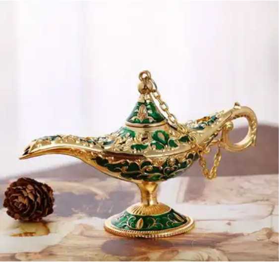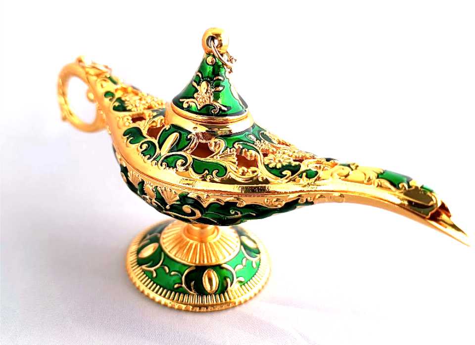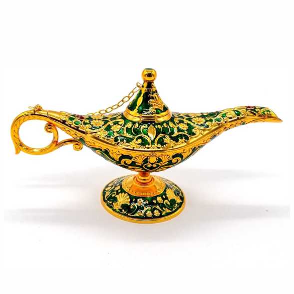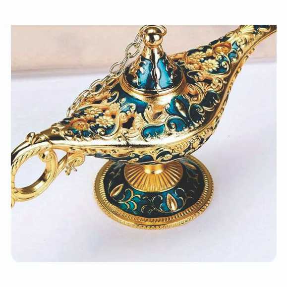 7. vintage metal grabado Aladdin magia genio lámpara