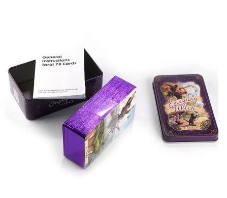 Su formato compacto (10,3×6cm) y su empaque en caja de metal de colección lo hacen perfecto para uso personal o como regalo especial. Incluye una guía en PDF con interpretaciones detalladas para facilitar la lectura.